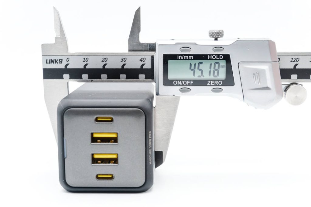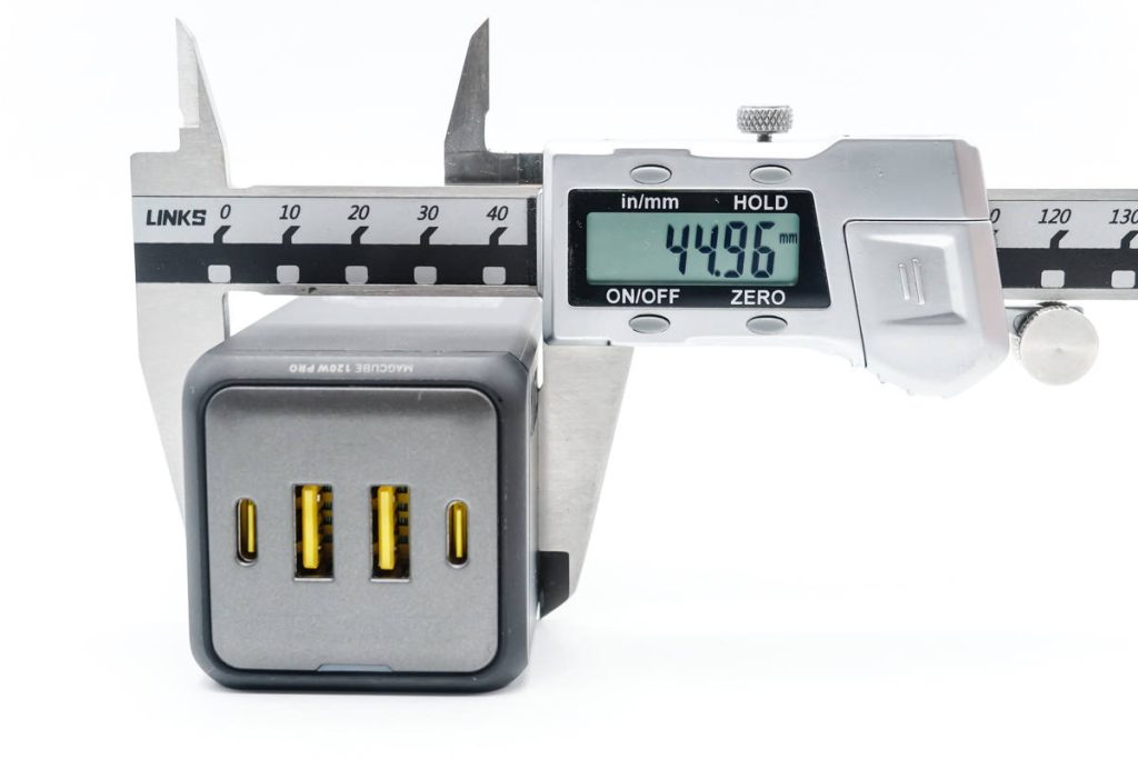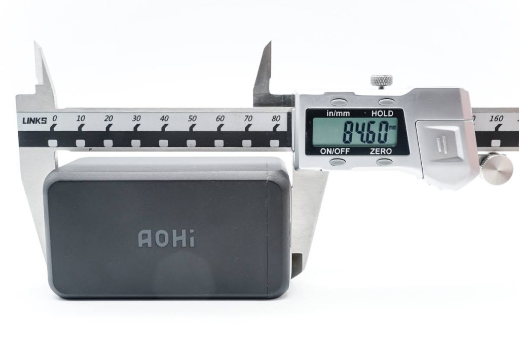 高度约为45.18mm。AOHi 120W氮化镓桌面充电器的尺寸约为 84.6×44.96×45.18mm,充电器的体积约为171.84cm³,以充电器的120W功率计算,充电器的功率密度约为0.69W/cm³。