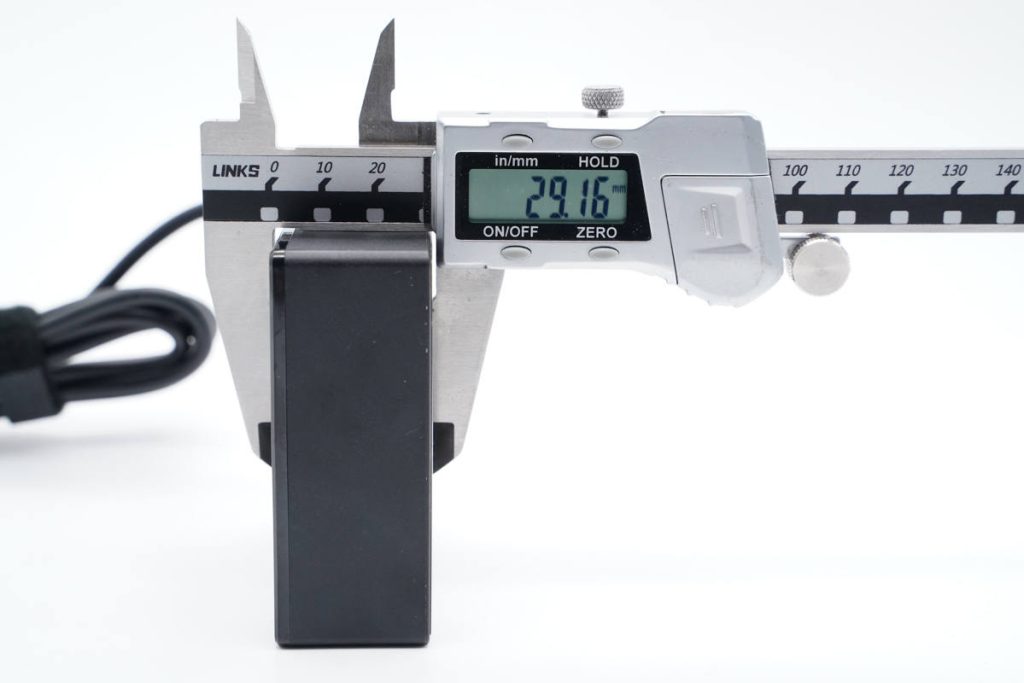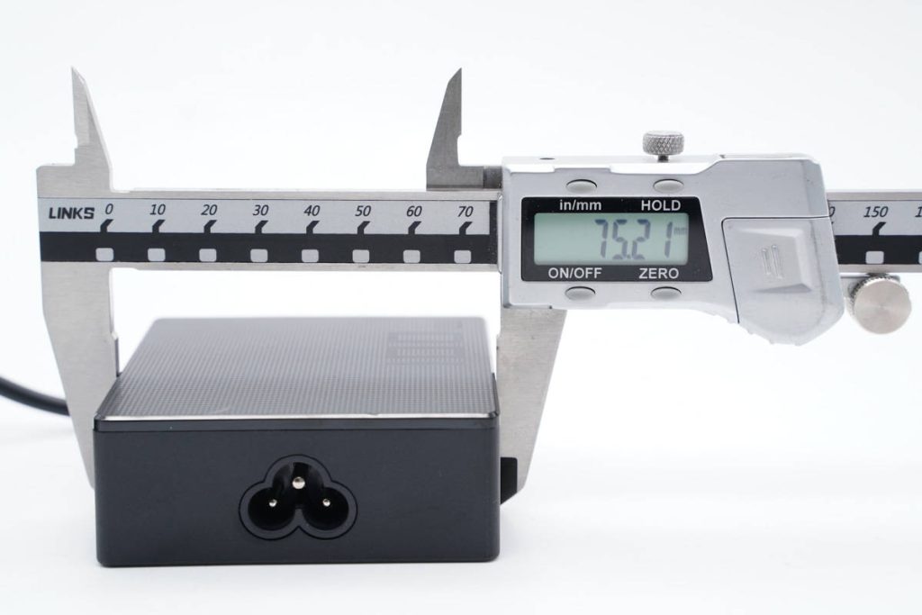 厚度约为29.16mm,充电器的尺寸约为 75.21×75.25×29.16mm,充电器的体积约为165.03cm³,以充电器100W功率计算,充电器的功率密度约为0.6W/cm³。