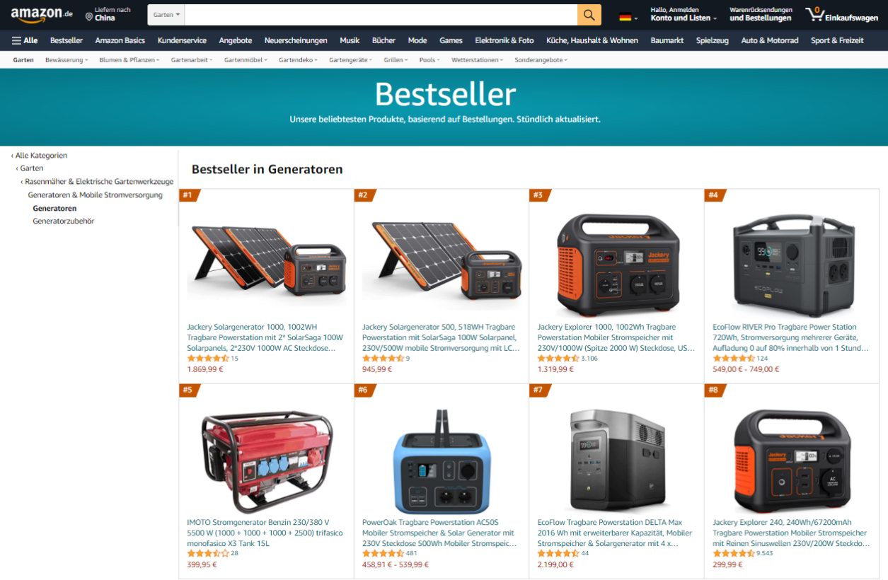 继2月以来,德国亚马逊官网“bestsller”畅销储能产品榜单中,电小