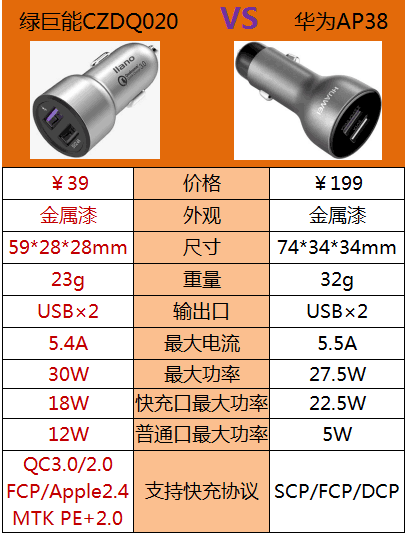 01 价格这么低,性能有保证吗?来看下两者对比:绿巨能小火箭 VS 华为原装车充,小火箭不输华为原装。