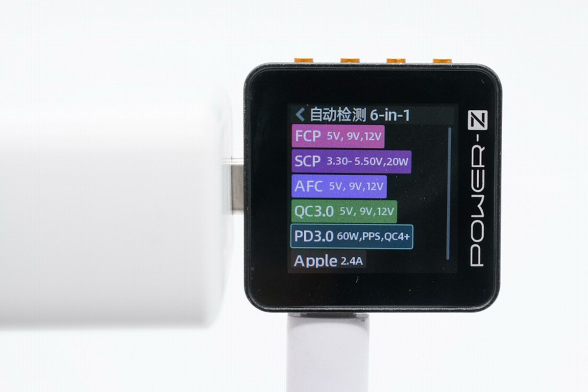 除 USB PD 快速充电标准外,通过快充协议轮询发现,还支持 APPLE2.4A、FCP、SCP、AFC、QC3.0 等常见的快充协议,新老设备均适用。