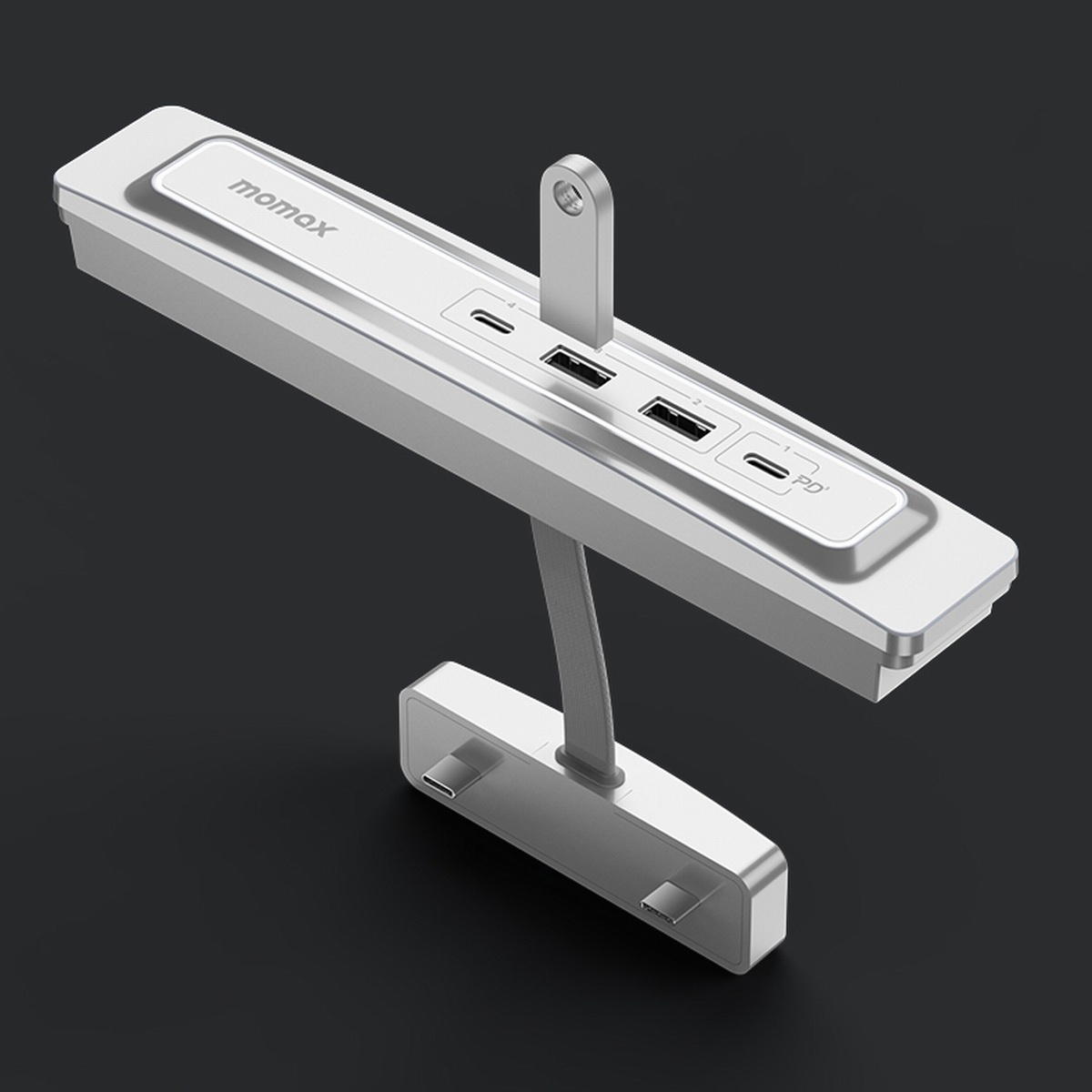 MOMAX 特斯拉专用转接扩展器采用原装位设计,银色表面工艺处理质感高档,放置在在手套箱顶部完全融入车厢氛围中,完全看不出是后装的配件。