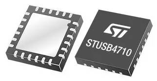 STUSB4710 DFP控制器主要用于电源提供端,例如交流电源适配器、电源、USB HUB分线器、充电座、智能插头和显示器。这款芯片集成与所连设备充电握手所需的全部电路,支持多达5档输电功率(Power Delivery Profiles)。通过内部非易失性存储器,各项参数可全部自定义,可处理整个连接过程,均无需外部CPU介入和额外的软硬件,能够直接使用。如果是多端口应用(例如,一拖四分线器),通过一个I²C接口,可将多个STUSB4710芯片并连到一个微控制器(MCU),实现功率分配算法。