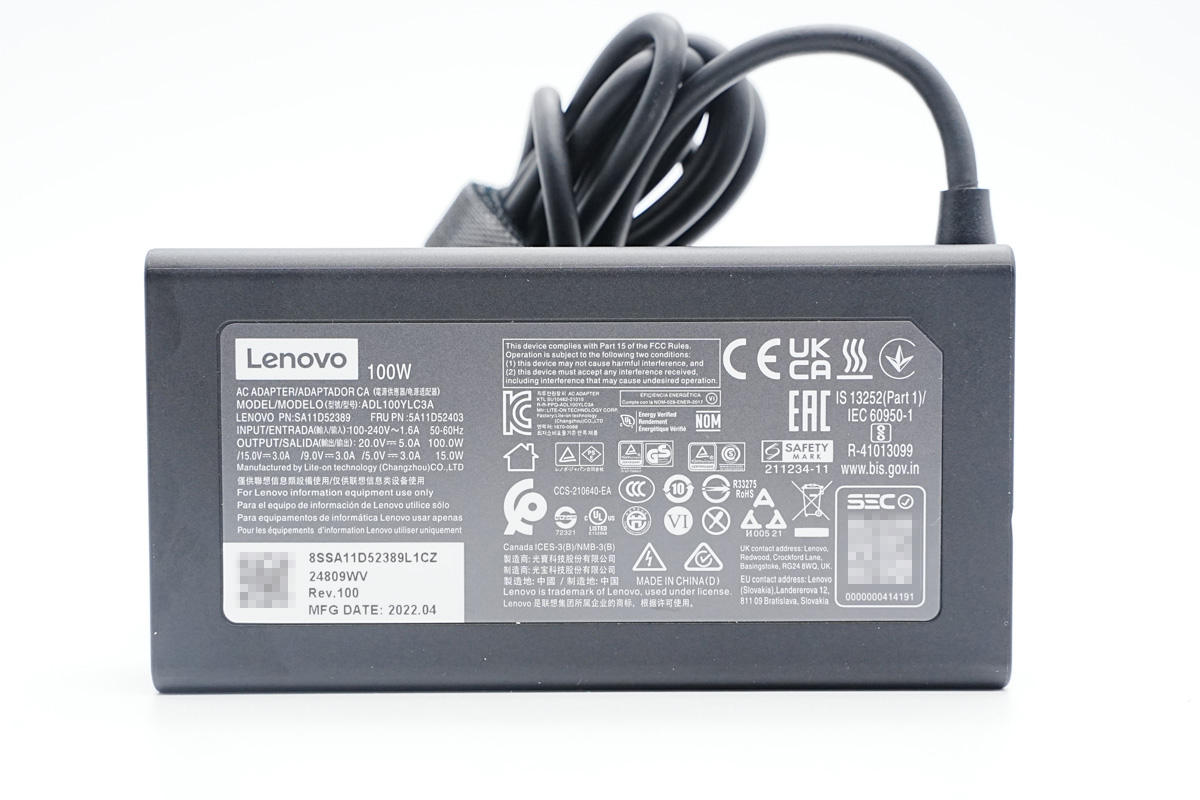 顶面对角分别设计有Lenovo品牌以及100W输出功率字样。