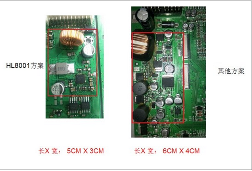 4、HL8001 产品优势之四:大幅节省PCB面积+减少外围元件及尺寸