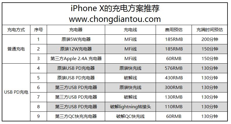 目前,关于iPhone的充电方案已经多达十几种,以iPhone X为例,小编就整理出了9种不同的线充方案。不同的充电方案有着不一样的使用体验,使用成本悬殊也非常大。
