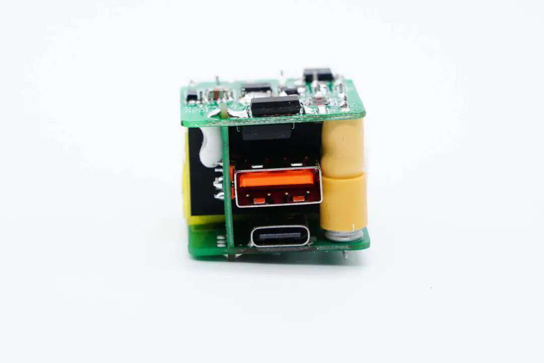 PCBA模块采用工字结构设计,充分利用内部空间。采用诚芯微CX7527C+CX7538B高集成快充方案,方案高度集成可有效简化电路,开发设计变得更加简单。双口输出采用云矽半导体XPD738协议芯片控制,支持输出功率智能分配,同时云矽半导体芯片在供货方面保证货源充足,可以保证客户的产品持续供应市场需求。