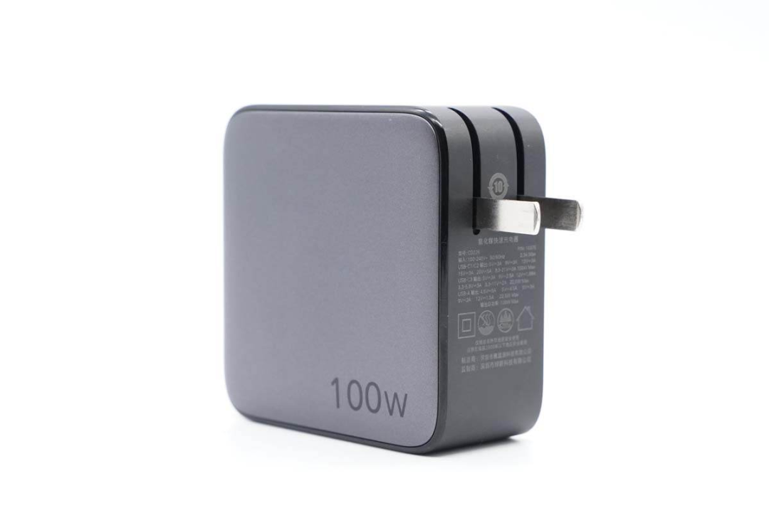 倍思又一款100W级氮化镓快充,外观上延续了倍思此前的100W多口充外观ID设计,机身上也印有100W特殊字体,此外充电器采用可折叠插脚设计,保证了便携性。产品配备单USB-C接口,支持高通最新QC5快充,还支持QC2.0/3.0、PD3.0、PPS快充协议,具备5/9/12/15V3A、20V5A、3.3-20V5A电压档位,充分满足手机、笔电等各类设备快充需求。