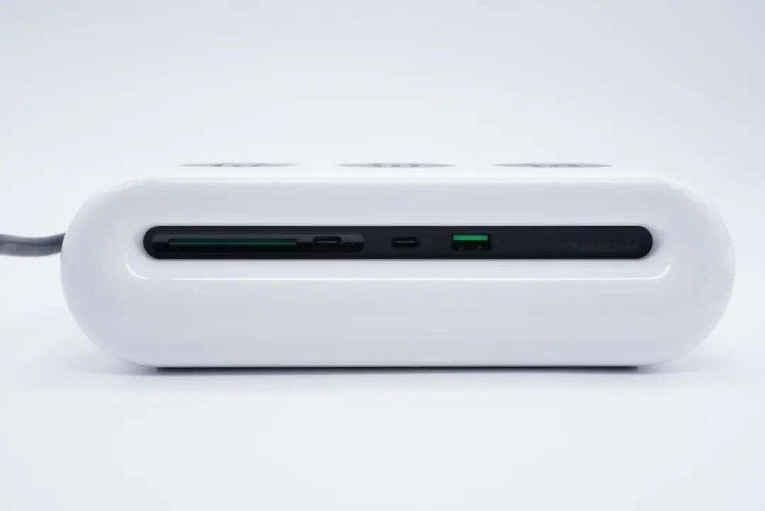 图拉斯这款65W快充插座采用“传送带”般造型设计,和一般的直板插座比起来就显得独特的多,让人眼前一亮。机身光滑圆润,触摸手感好。配备2C1A接口是时下主流需求,同时支持QC、AFC、FCP、SCP、PE2.0、PD3.0等丰富快充协议,可以很好的兼容市面上绝大多数设备。