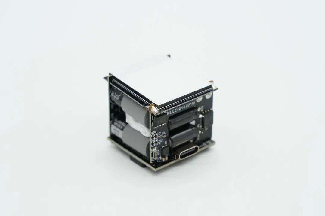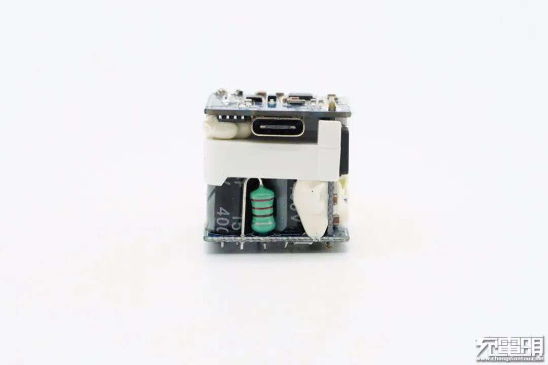 由海陆通助力量产上市的这款迷你20W快充,最终的整体尺寸做到了32*31*31mm,非常的小巧,除了内部巧妙采用堆叠结构设计外,还得益于赛能微S1109S高集成快充芯片的使用,其内置MOS管可以大大简化电路节省空间。