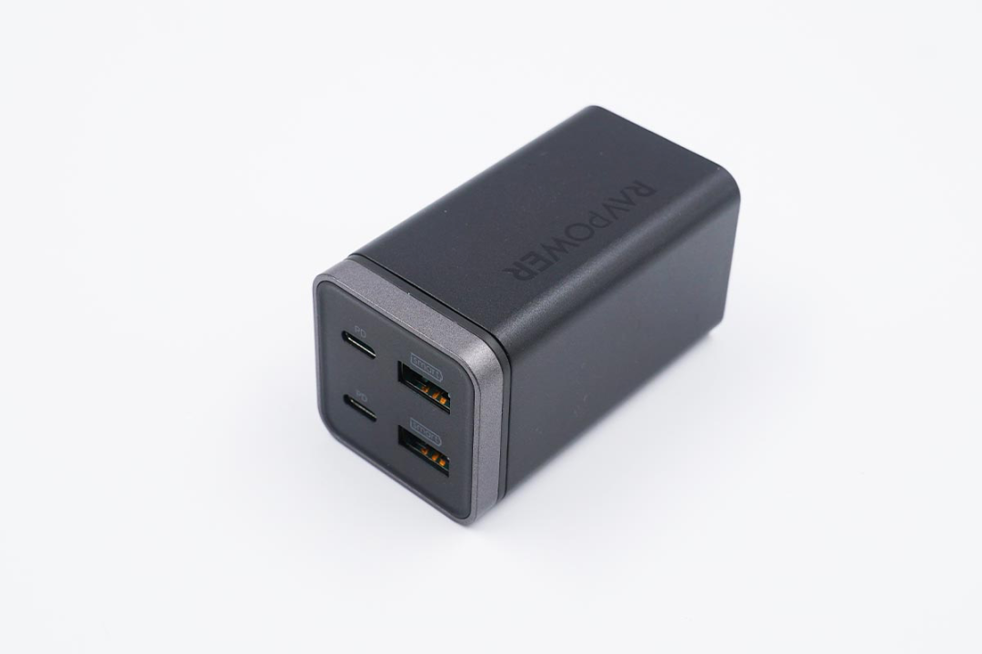 RAVPOWER 65W 2A2C充电器采用方柱造型设计,输出端设有装饰塑料环,整体设计风格简约。输出端配备2A2C接口,支持QC、AFC、FCP、PD快充协议,多接口、支持盲插、65W大功率等都是产品的核心卖点,满足笔电、平板、手机设备的快充需求。