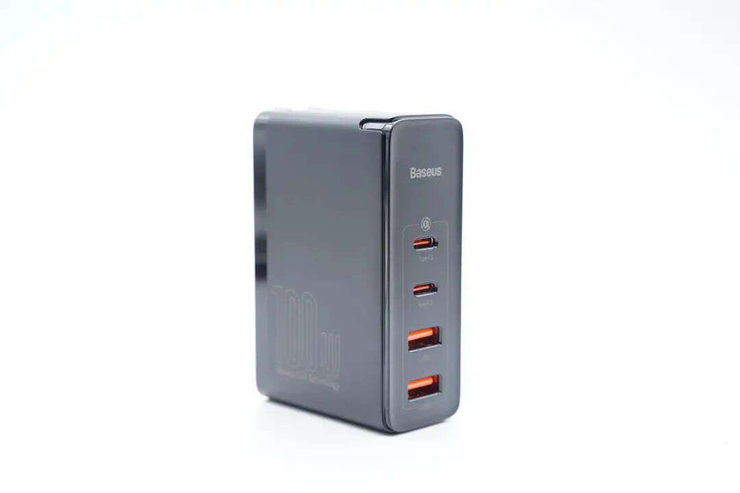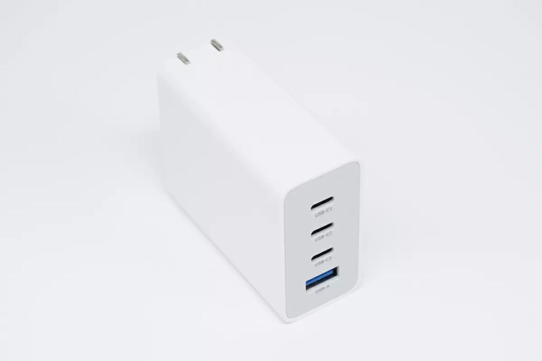 倍思这款Pro版100W氮化镓充电器延续扁平修长ID风格设计,配备2A2C接口,支持QC、AFC、FCP、SCP、PE2.0、PD3.0、PPS多个整流快充协议,支持5A PPS快充,整体性能以及兼容性很好。另外支持多个充电策略,满足笔记本、手机等多台设备同时快充需求。设计上配备可折叠插脚,两类接口性能上完全一致,支持功率盲插,便携便用。