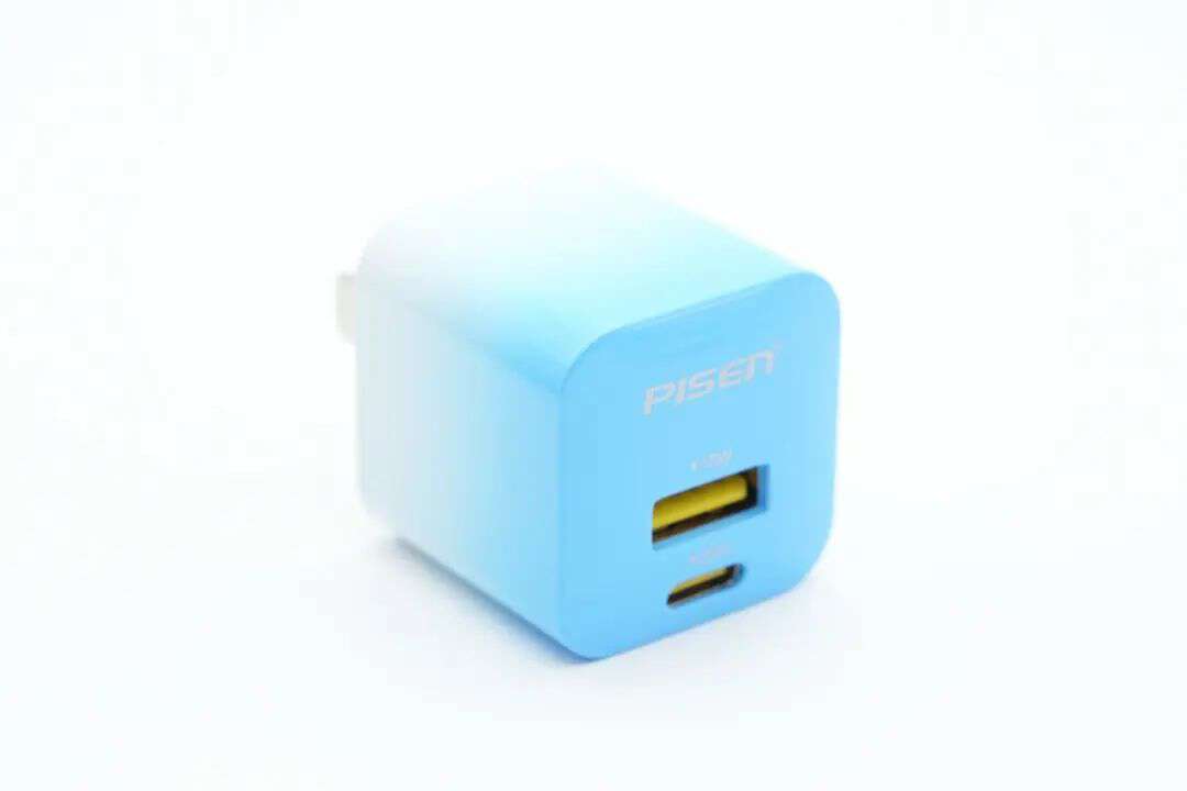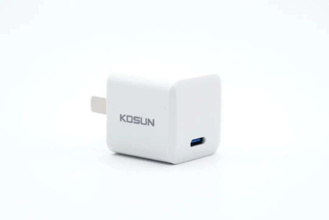 康鑫盛20W迷你PD快充充电器输入端配备固定式插脚,腰身亮面设计,输出顶面哑光处理,机身整体小巧圆润使用手感好。充电器支持QC、PE2.0、PD3.0和PPS快充协议,还具备5V3A、9V2.22A、12V1.66A、3.3-5.9V3A和3.3-11V2A电压档位。产品兼容性广泛,小巧而实用。