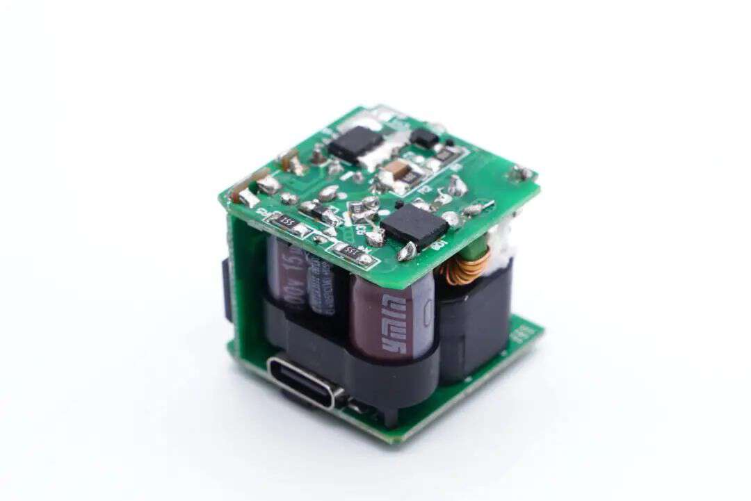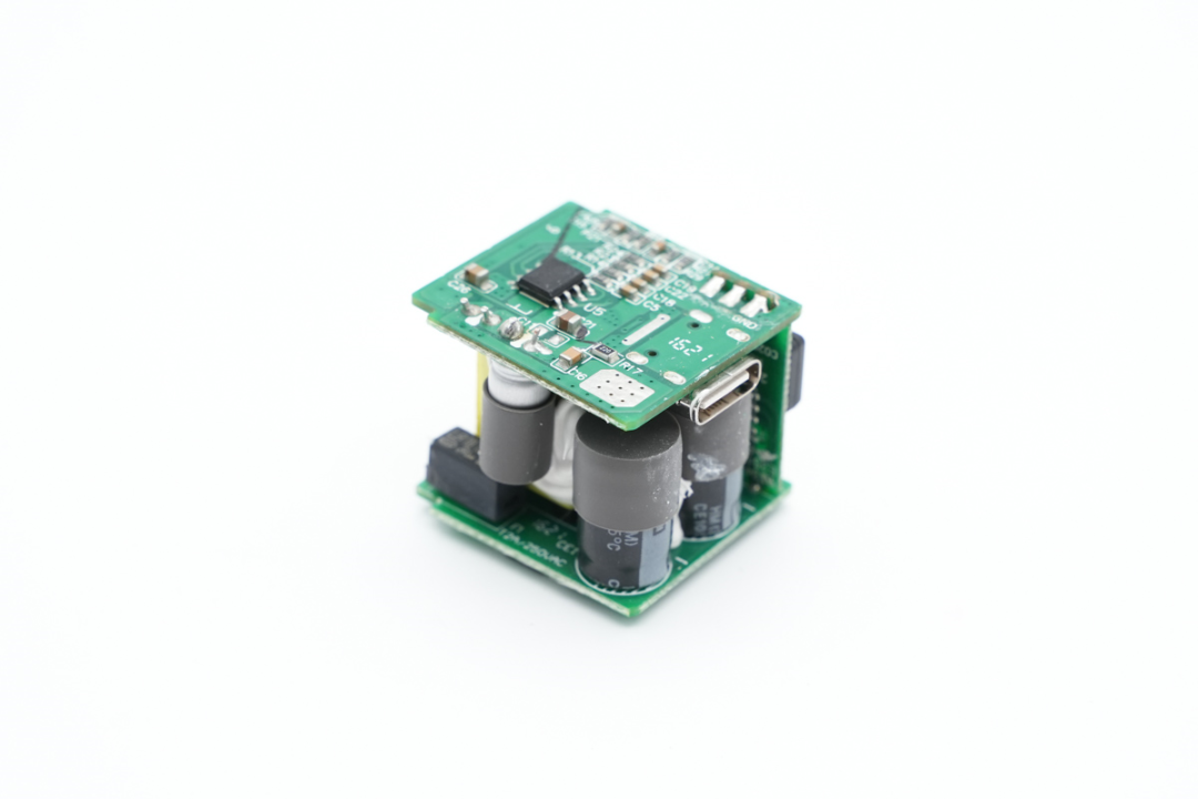该充电器三块PCB板组合焊接设计,采用了诚芯微CX7527C+CX7538B高集成PD快充套片方案,有效简化外围电路,帮助充电器实现小型化。再者更方便工程师设计,有效降低系统成本、加速上市等优势,深受海内外客户喜爱。