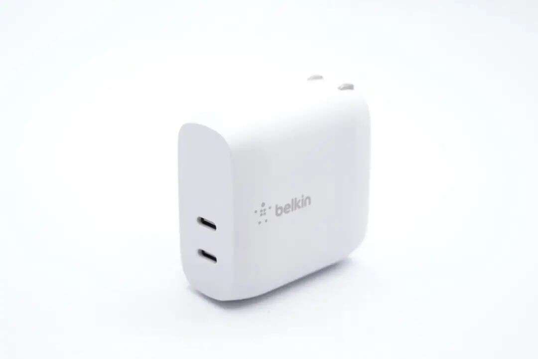 贝尔金这款40W双C口快充充电器主体机身壳磨砂处理,两侧弧面过渡,配备可折叠插脚,携带方便且使用手感好。两USB-C口均支持USB PD3.0快充标准,具备5V3A、9V2.22A电压档位,主打iPhone 12 20W快充,双口同时20W快充,针对性设计非常突出。双口支持功率盲插,使用方便。