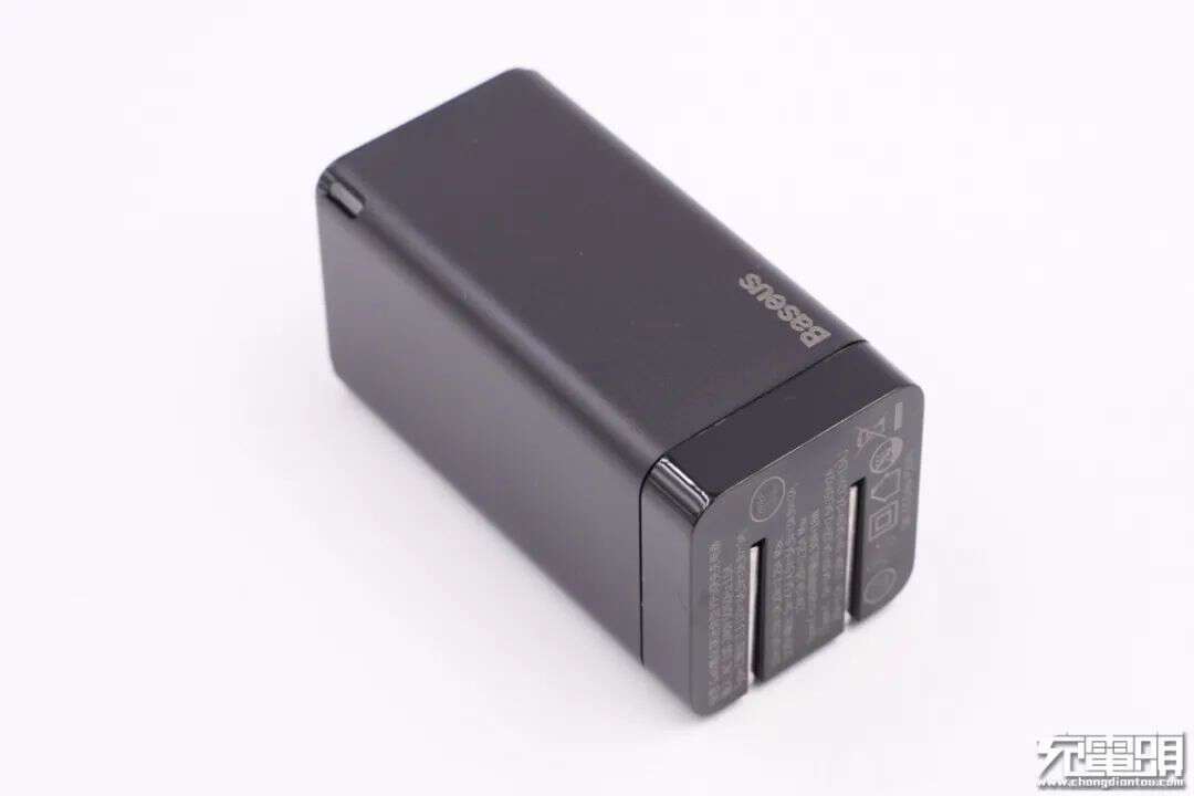 倍思45W 双C口氮化镓充电器机身修长,搭配可折叠插脚,携带方便。两个输出口均支持QC2.0/3.0、AFC、FCP、SCP、PD3.0快充,具备5/9/12/15V3A、20V2.25A和3.3-11V/5A电压档位,兼容的协议很丰富。双口支持30W+18W快充输出,可同时为两台设备充电,降低充电时间成本。