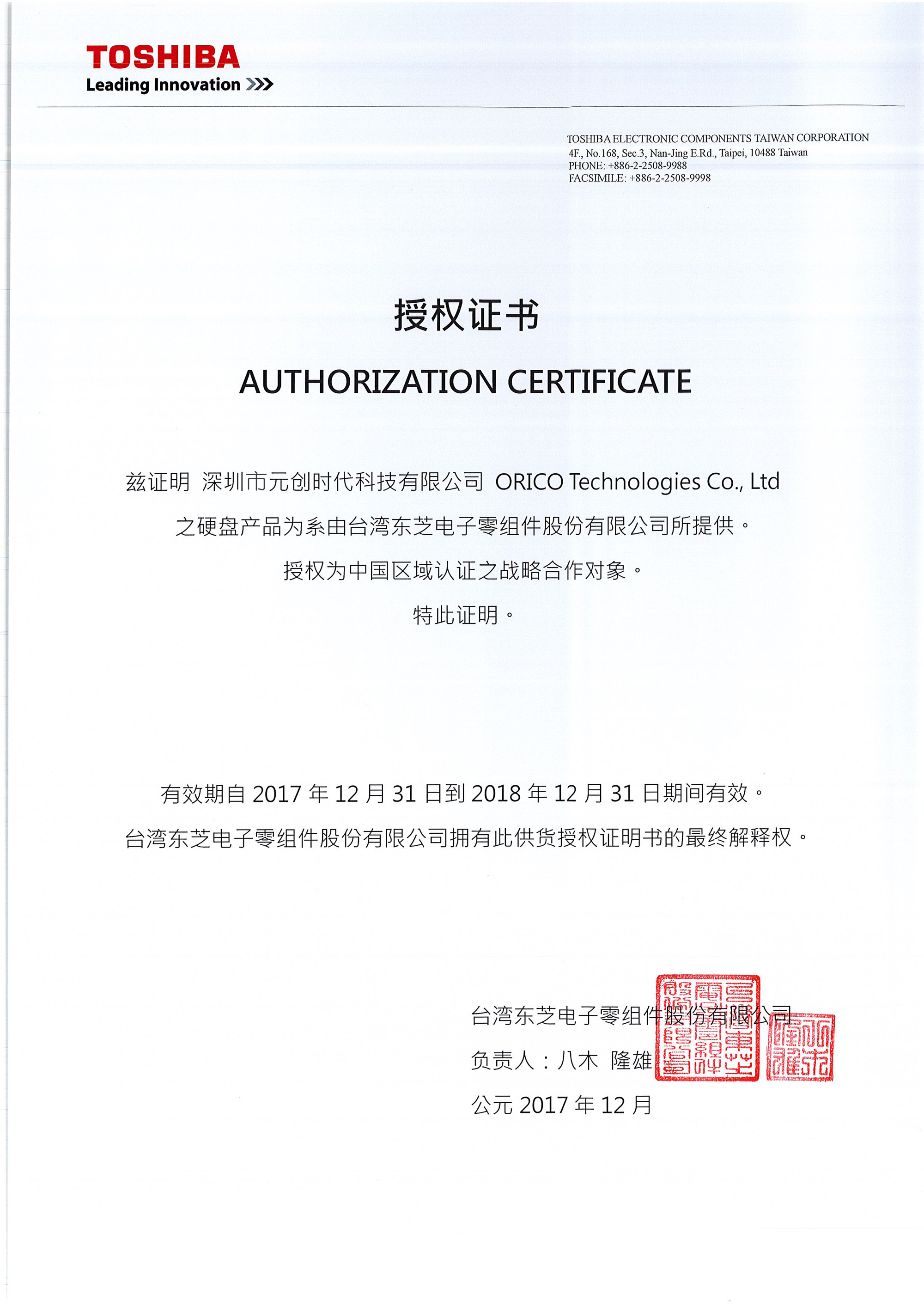 国际知名存储外设及3C数码全球品牌,奥睿科(ORICO)成为了台湾东芝电子零组件股份有限公司授权的中国区域战略合作伙伴。