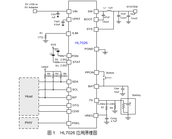 HL7026同时集成USB OTG 5V/2.1A升压输出功能,非常适合智能手机,平板电脑等产品的应用。