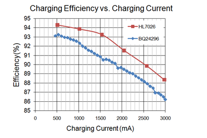 三、HL7026 与其它同类charger比较,具有更高的效率