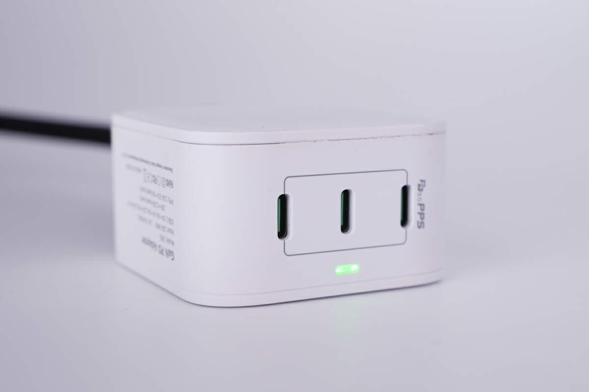 鸿达顺推出的这款65W氮化镓充电器为方块造型,配有折叠插脚,体积小巧,易于携带。充电器具备白黑两种经典配色,并配有三个USB-C接口。其中三个USB-C接口均支持快充,并支持功率盲插,支持的协议相同,还支持多个设备同时连接自动分配,功能十分实用。
