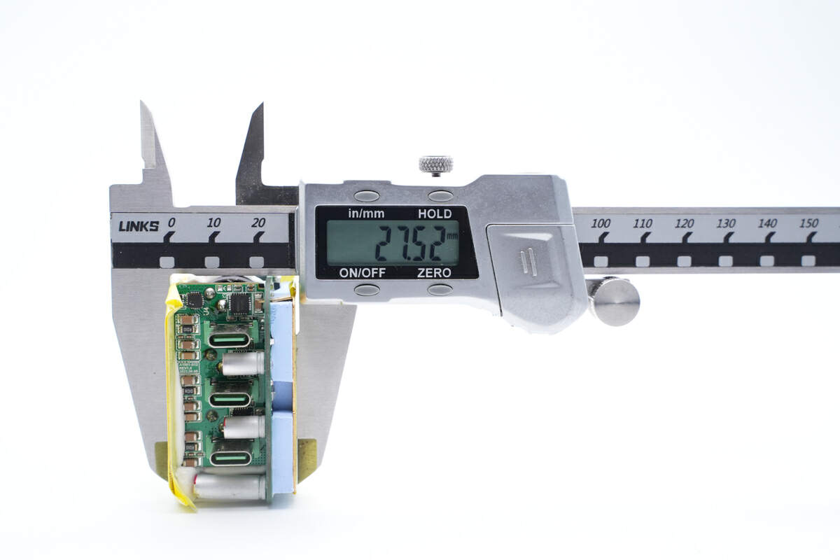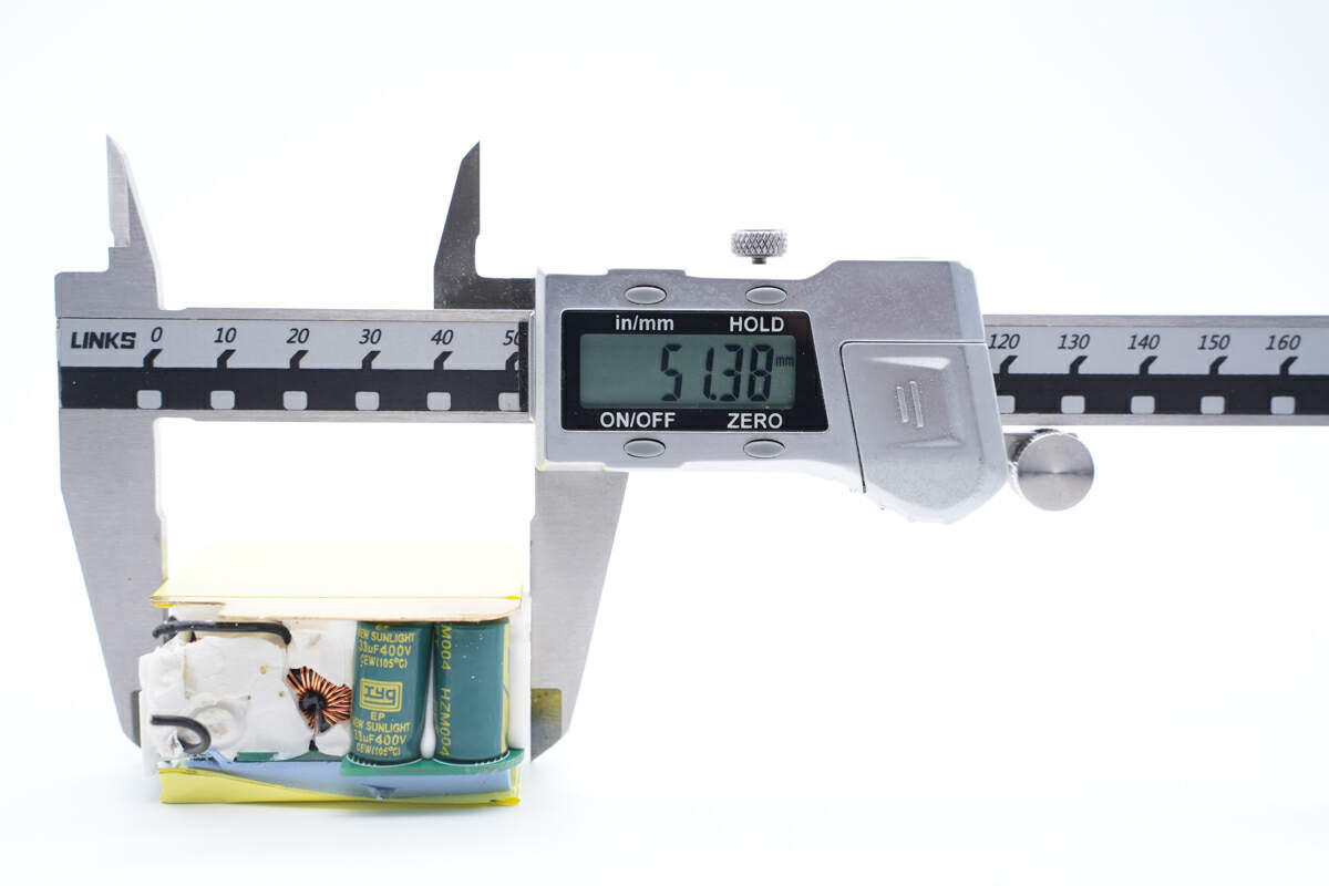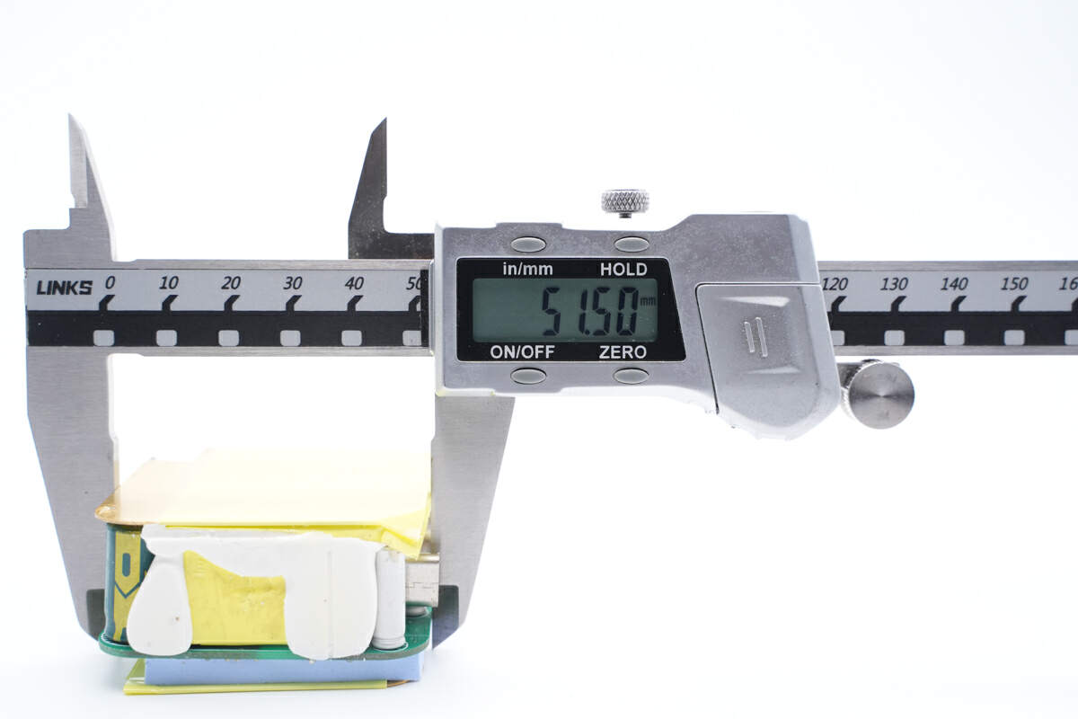 使用游标卡尺测得PCBA模块长度约为51.5mm。