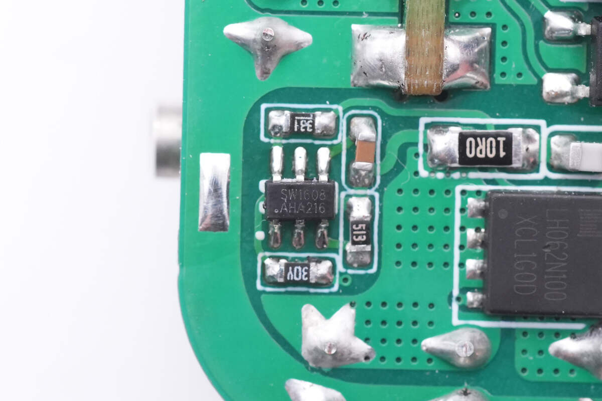 充电器内置智融SW1125合封氮化镓芯片,这是一颗集成650V耐压,260mΩ导阻氮化镓开关管的高频准谐振反激变换器,芯片内部集成了700V高压启动电路,线电压掉电检测和X电容放电功能。