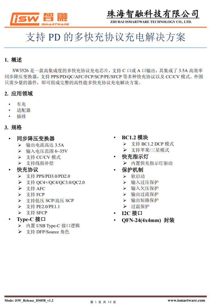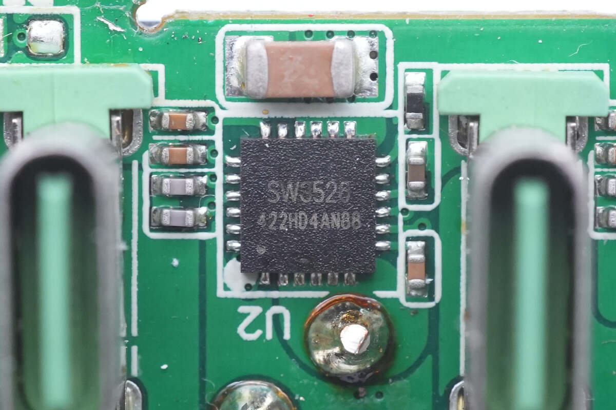 三个USB-C接口的降压协议芯片均采用智融SW3526,芯片内部集成3.5A高效率同步整流降压转换器,支持PPS、PD、QC、AFC、FCP、SCP、PE、SFCP、低压直充等充电协议,支持CC/CV模式,外部仅需少量器件,即可组成完整的高性能多快充协议充电解决方案。