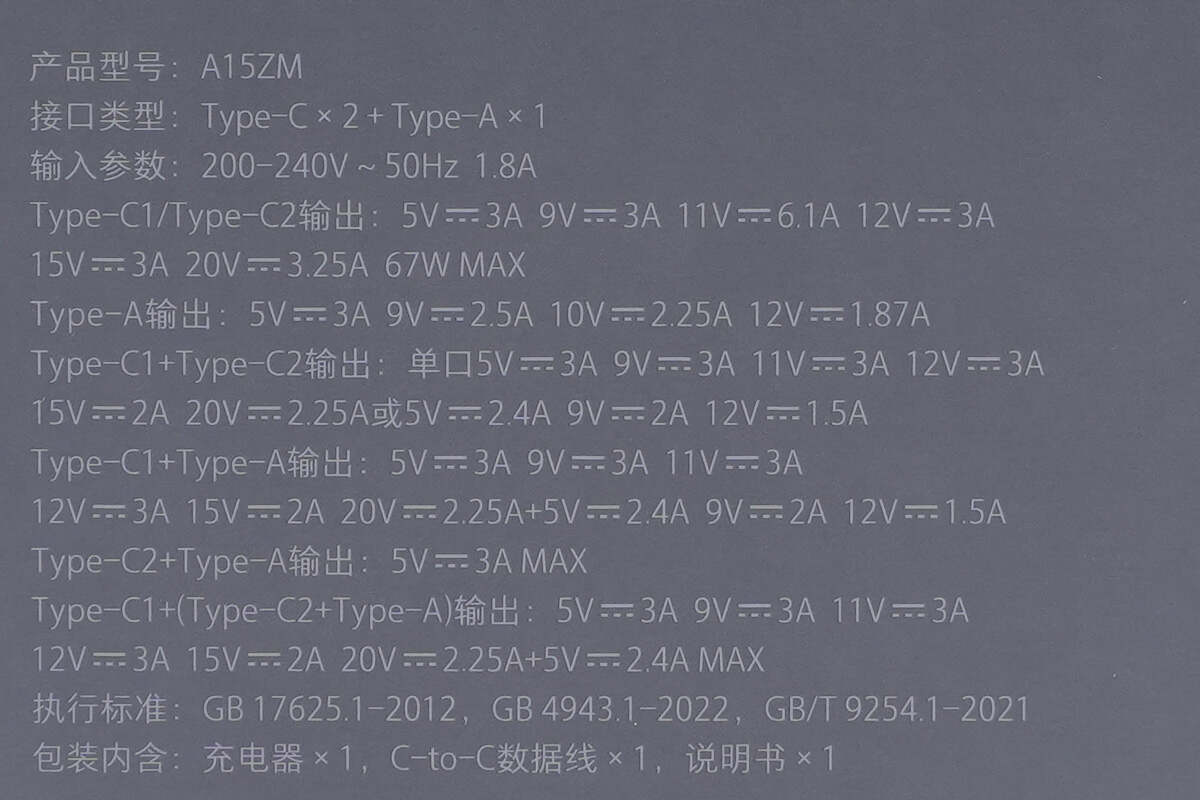 包装参数特写,下面再结合充电器实物进行详细介绍。