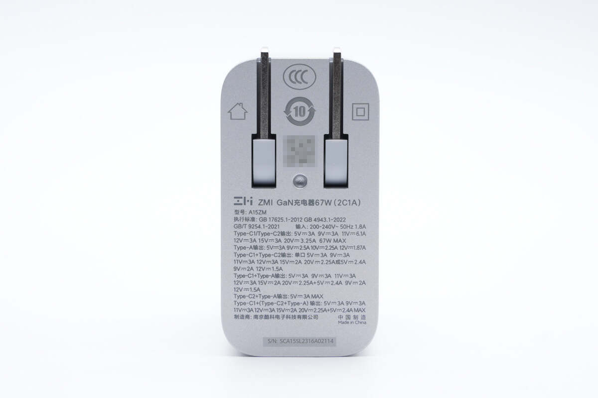 背面下方印有GaN字样,外人一看也能第一时间了解到这是一款氮化镓充电器。