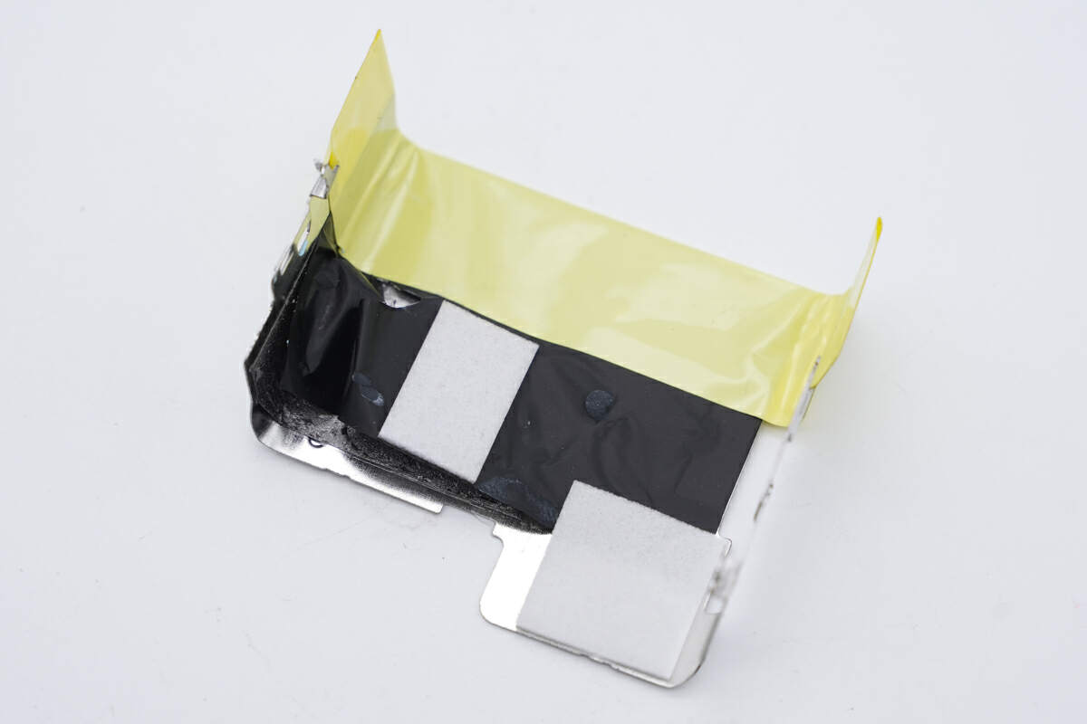顶部散热片内侧贴有石墨散热贴纸,对应两处高压滤波电解电容处都贴有导热垫帮助导热。