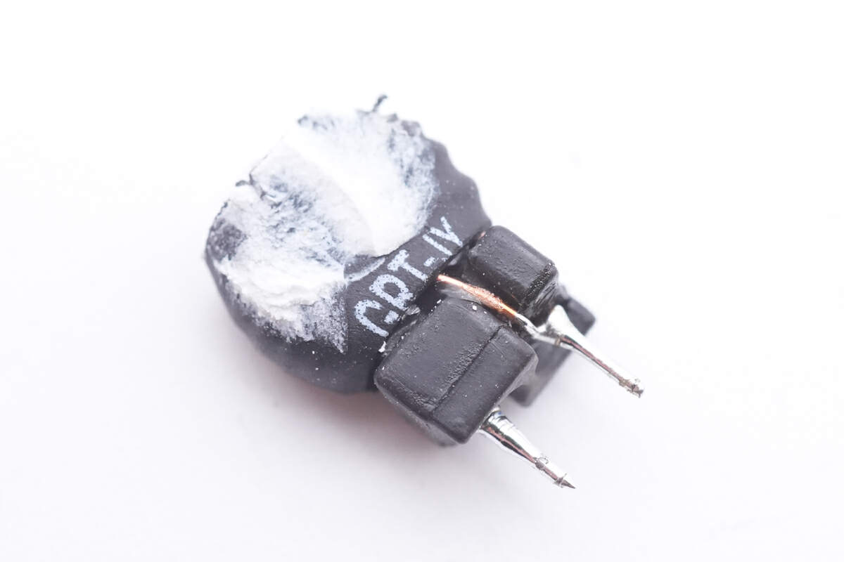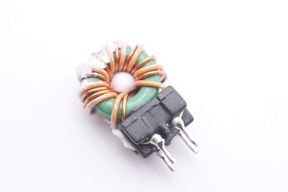 滤波电感特写,外套热缩管保护。