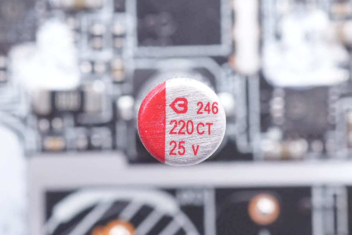 同步降压输出滤波固态电容规格为25V 220μF,也是来自绿宝石。