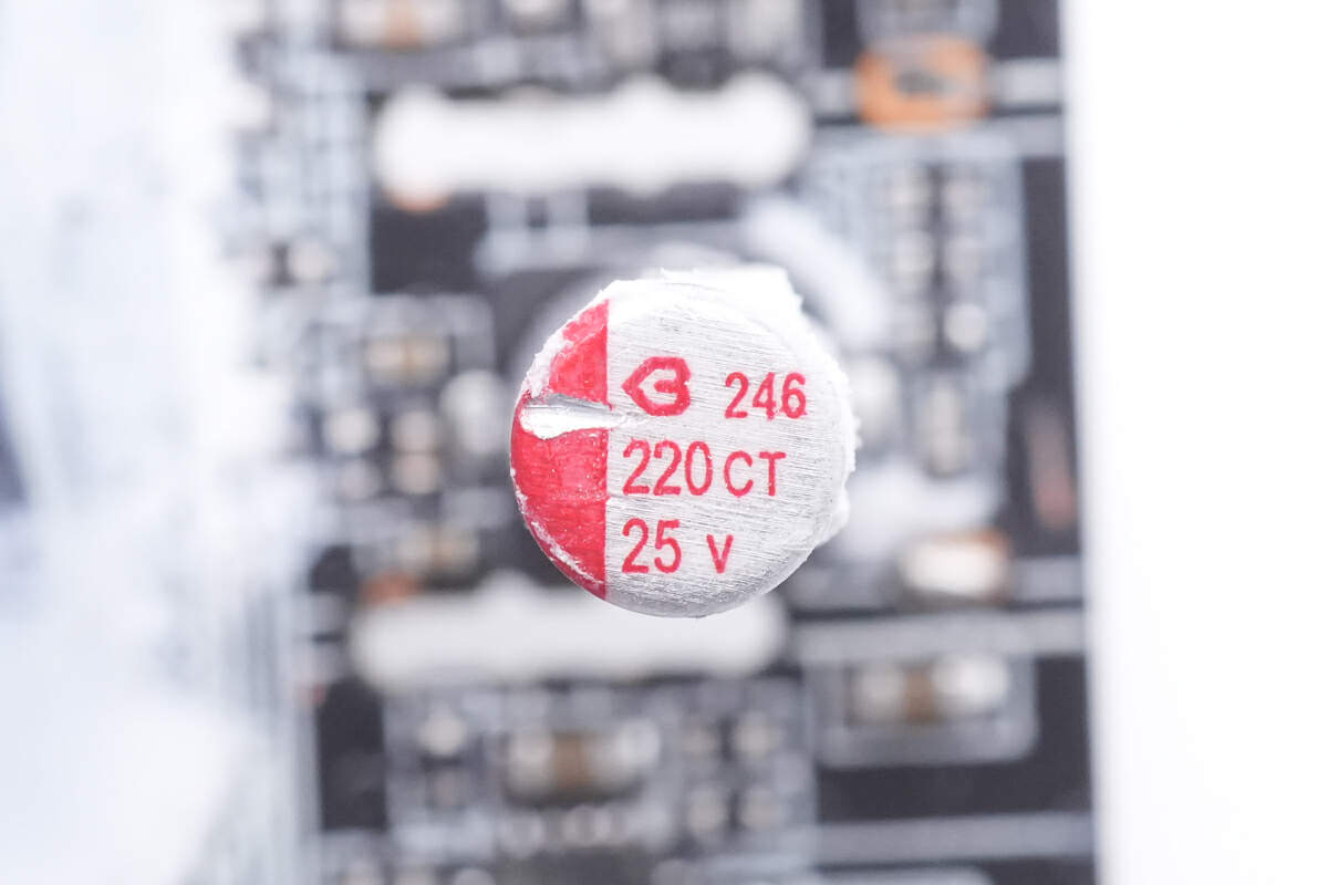 另一颗固态电容特写,规格相同。