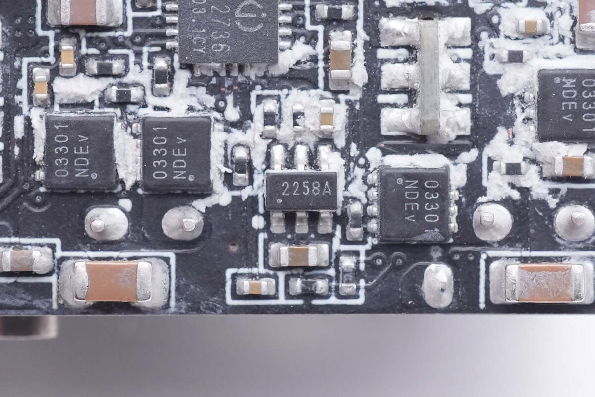 一颗丝印2258A的芯片用于功率自动分配控制。