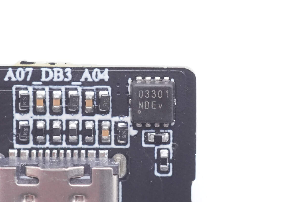 USB-C1口母座所在小板上设有相应的协议芯片以及输出VBUS开关管。