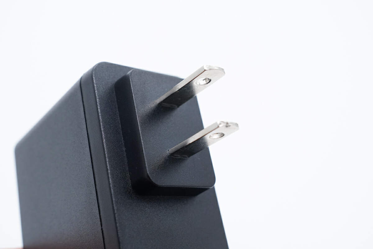 适配器底部配备美规插脚,所在区域外壳凸起设计。