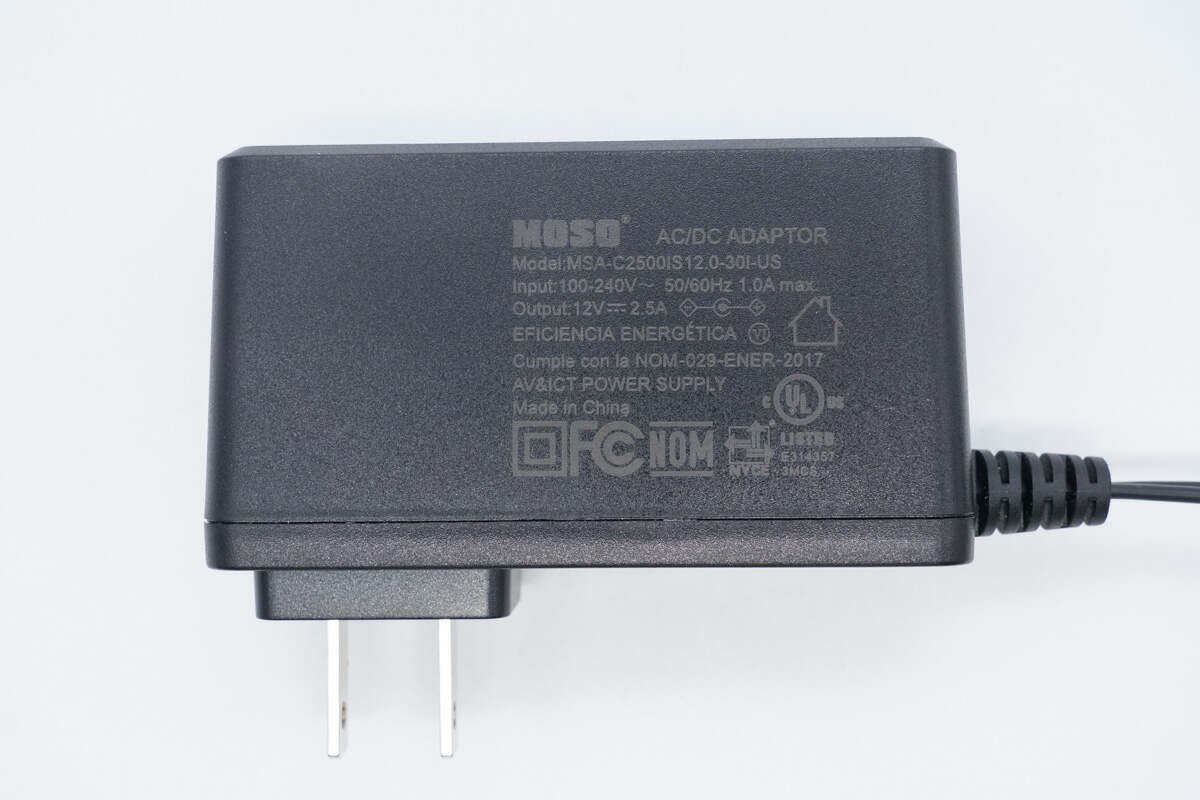 茂硕这款电源适配器为黑色机身,配有美规固定插脚。适配器自带1.6米长DC输出线,输出规格为12V2.5A,输出功率为30W,支持较大功率的路由器以及3.5英寸移动硬盘使用。