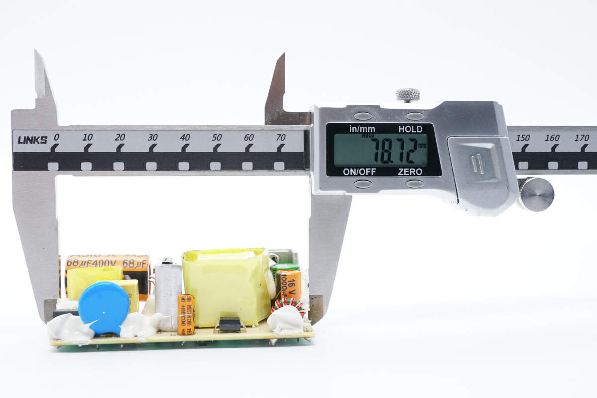 使用游标卡尺测得PCBA模块长度约为78.72mm。