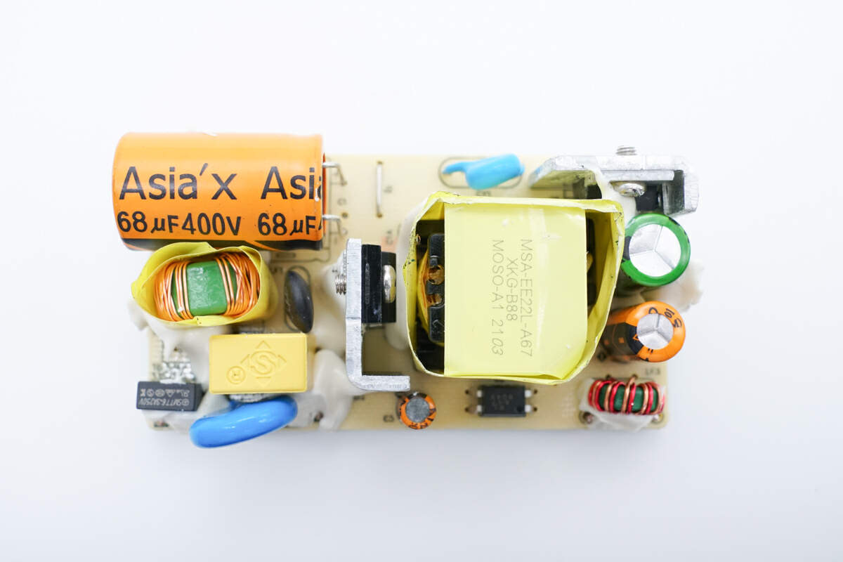 取出内部PCBA模块,内部高压电解电容打胶固定,初次级功率元件均固定有散热片。