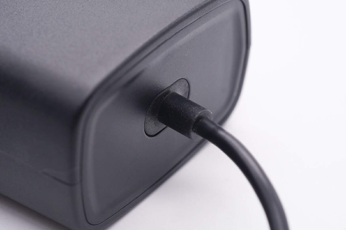 JBL这款电源适配器电源线与机身采用线体分离式设计,方便用户更换电源线进行使用。机身为长方体造型,两侧过渡圆润,外壳表面磨砂抗指纹。