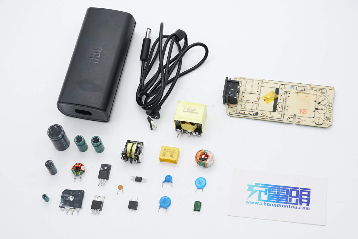 充电头网拿到了一款JBL的57W电源适配器,这款适配器采用长条直板机身设计,输入采用八字线插座,支持100-240V全球宽电压输入,具备六级能效标识。输出规格为19V3A,自带1.25米DC圆头输出线。可搭配各种长度的八字线,满足不同场合使用需求。下面就对JBL这款电源适配器进行拆解,看看内部的用料和做工。