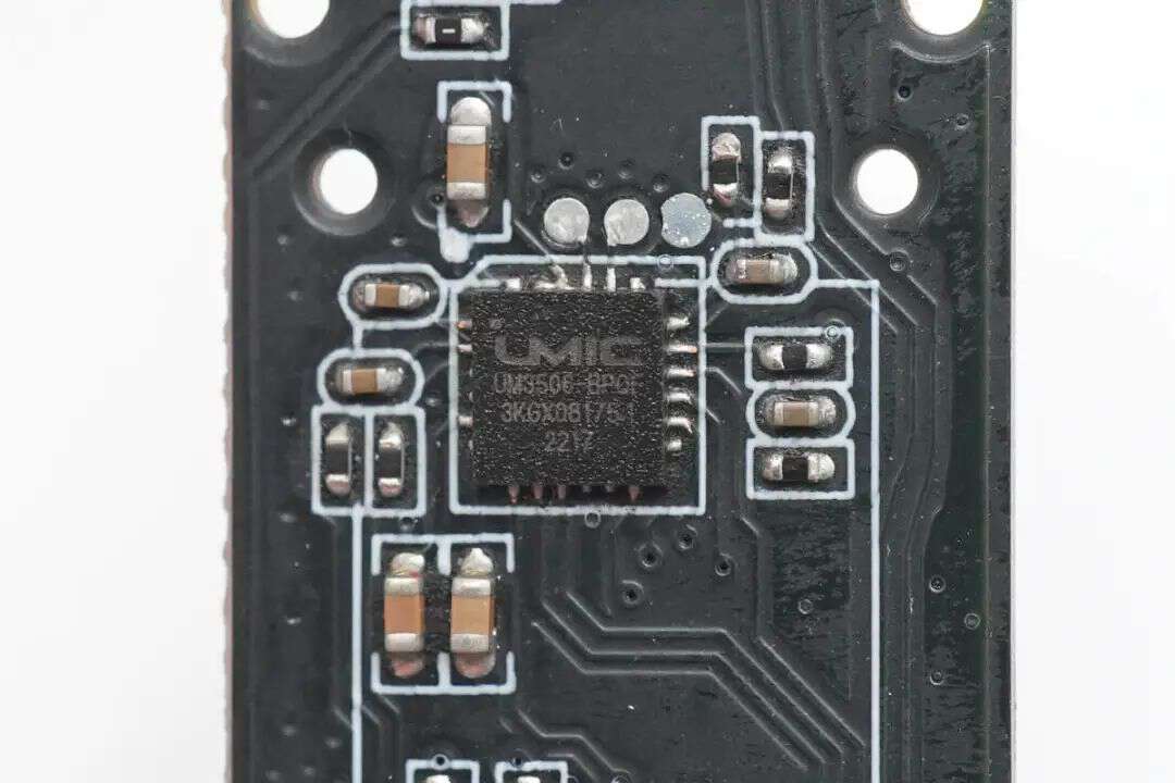 POWER-Z新款诱骗器采用超级精简的外观设计,整个PCB板的尺寸仅为54mm×38mm,PCB板上的器件也十分简单,其核心器件UM3506芯片来自广芯微电子,这也是业界首款支持USB PD3.1全档位诱骗及PPS,AVS的测试工具。