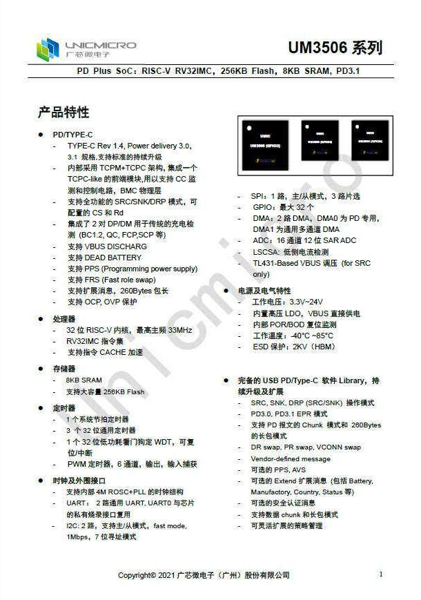 1、广芯微发布DRP双向快充芯片UM3506,支持PD3.1标准