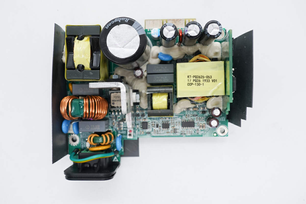 电源PCBA模块一览,通过螺丝固定在外壳内部。
