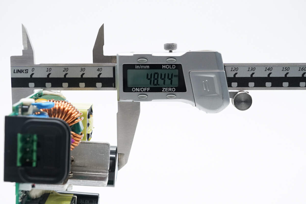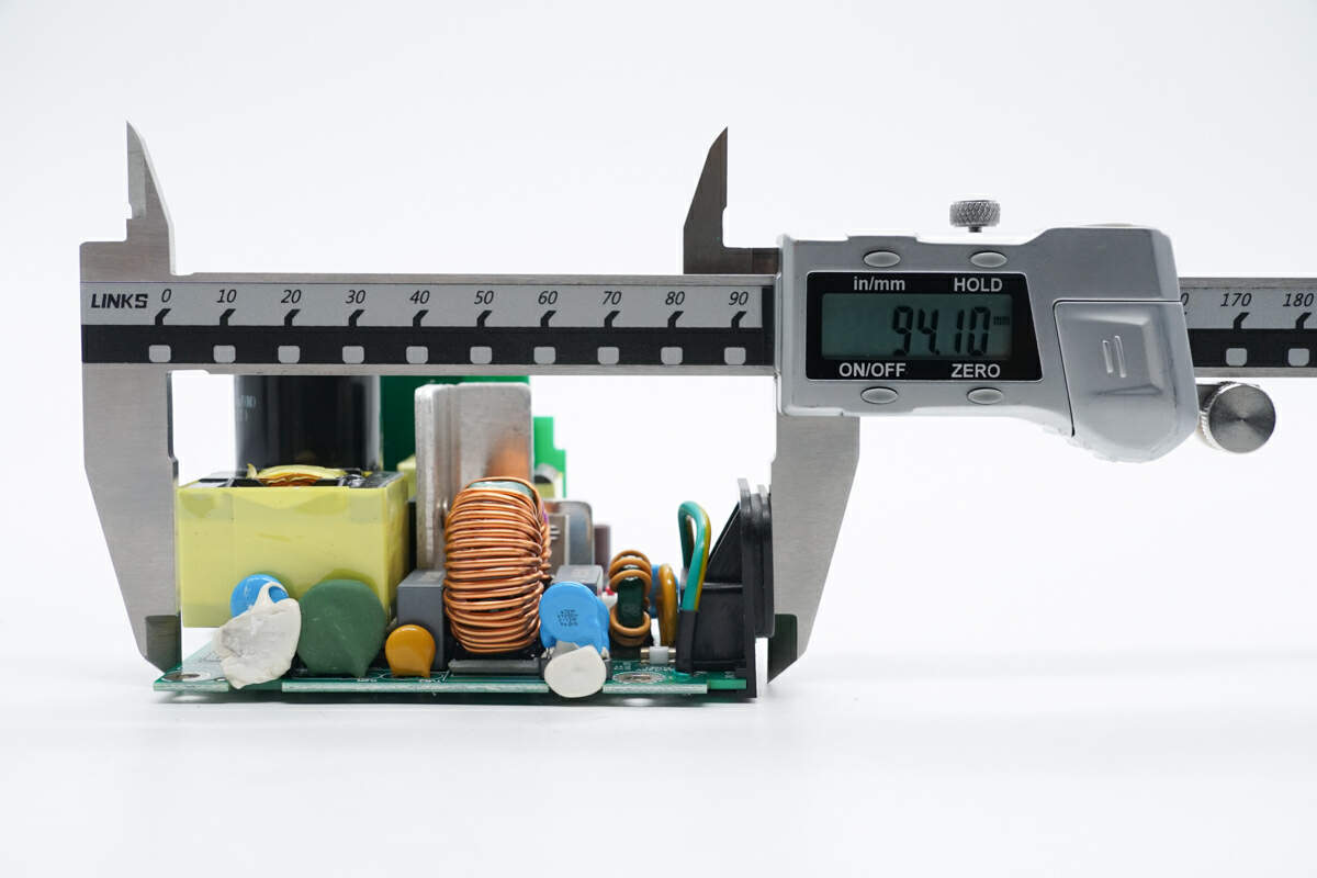 使用游标卡尺测得PCBA模块长度约为94.1mm。