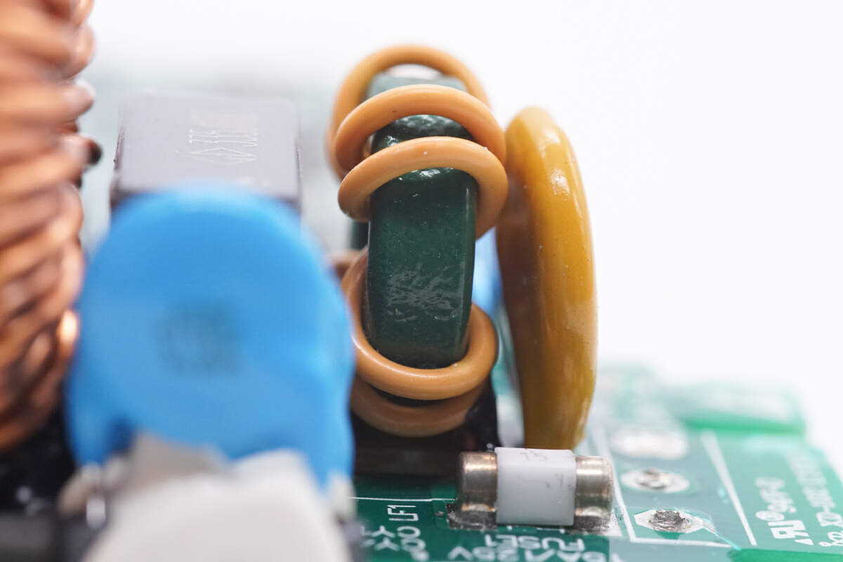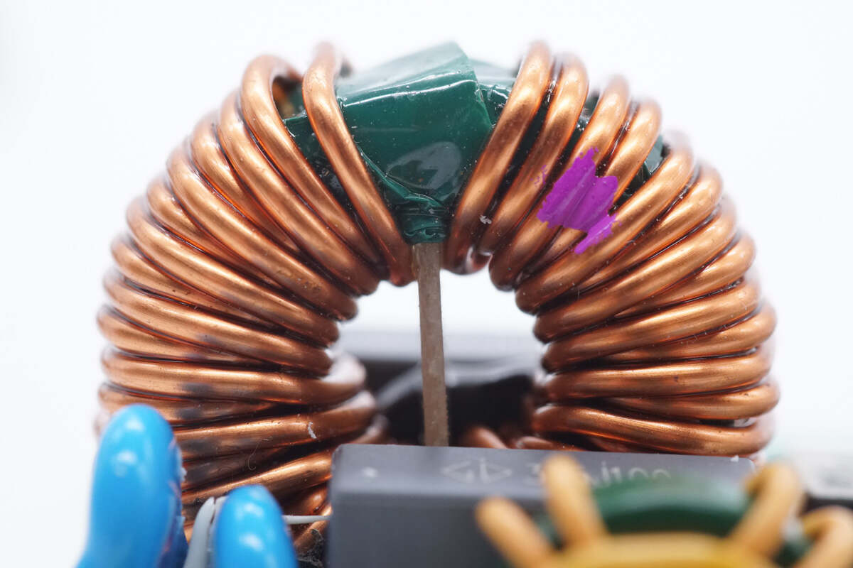 谐振电感特写,磁芯缠绕胶带绝缘。