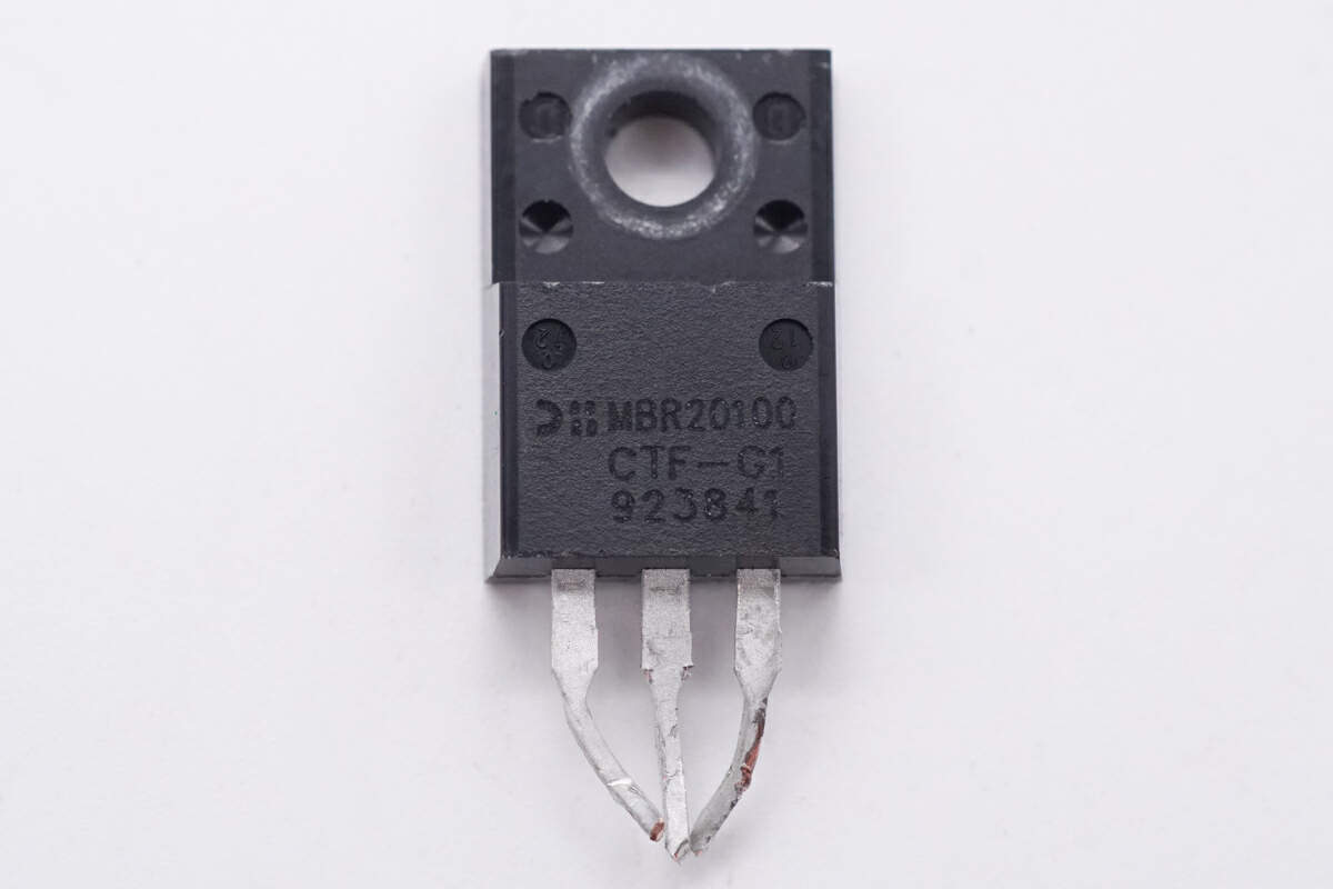 升压整流管来自DIODES,型号MBR20100CTF-G1,规格为20A 100V,采用TO220F封装。