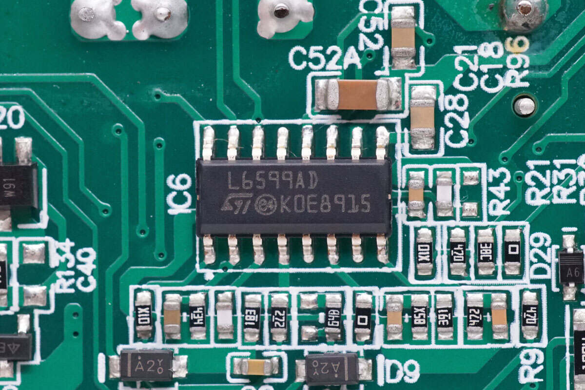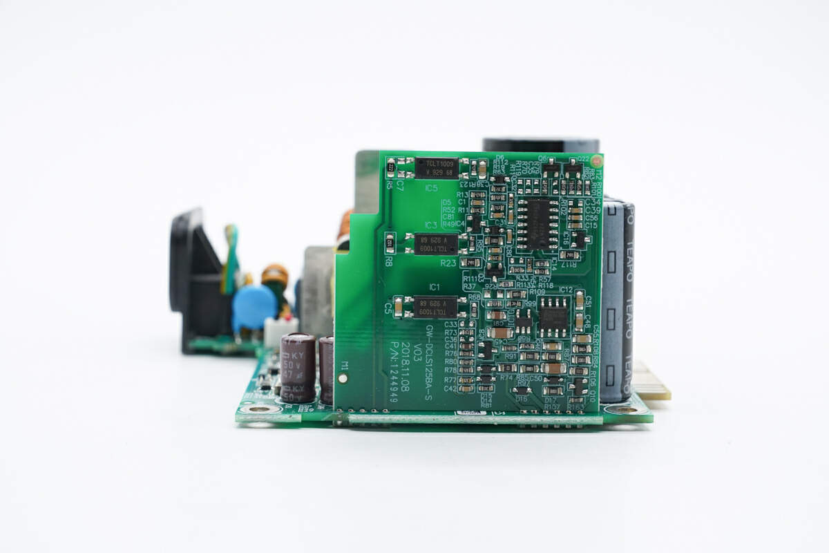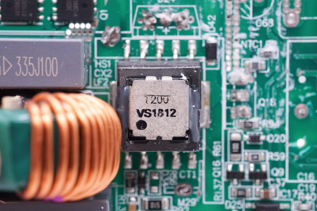 充电头网通过拆解了解到,这款电源内部采用一级反激升压,再通过LLC开关电源隔离,降压输出。使用安森美 NCP1271 进行输入升压,并使用ST意法半导体 L6599A进行LLC降压输出。在主PCB侧面还焊接一块管控小板,用于输出监测。电源模块内部用料均为一线品牌,做工扎实。
