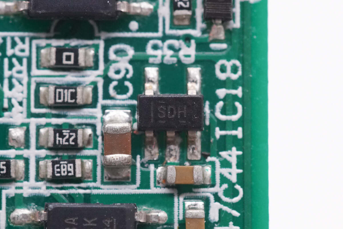 一颗LDO来自TI德州仪器,丝印SDH,实际型号TPS70950,是一颗30V输入,150mA输出电流的稳压器,输出电压固定5V。