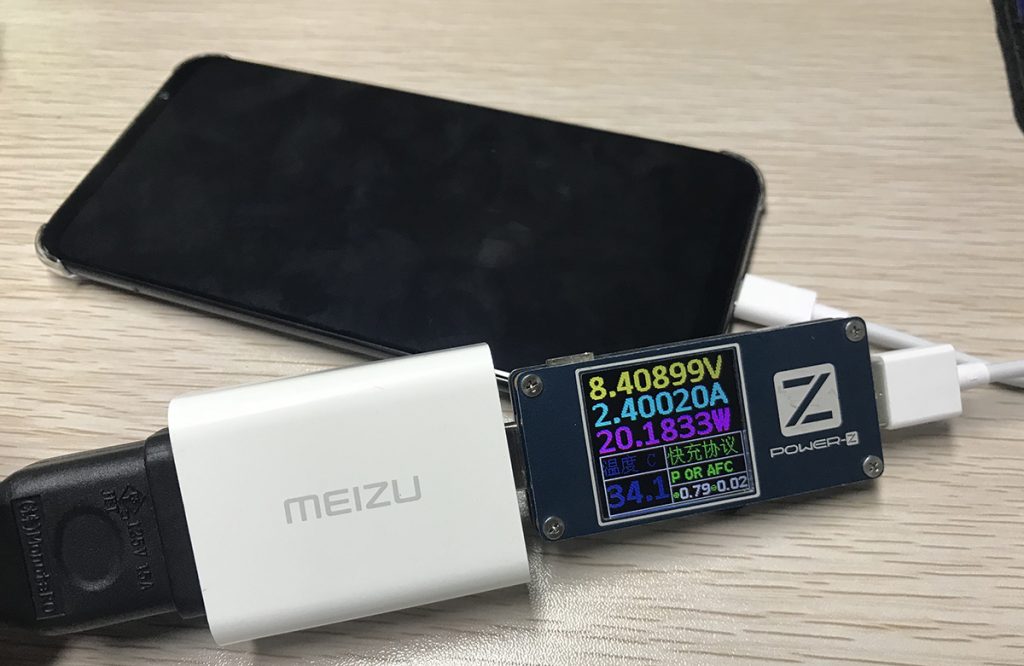 同样电量情况下使用魅族UP1220充电器充电,功率约为17.6W。